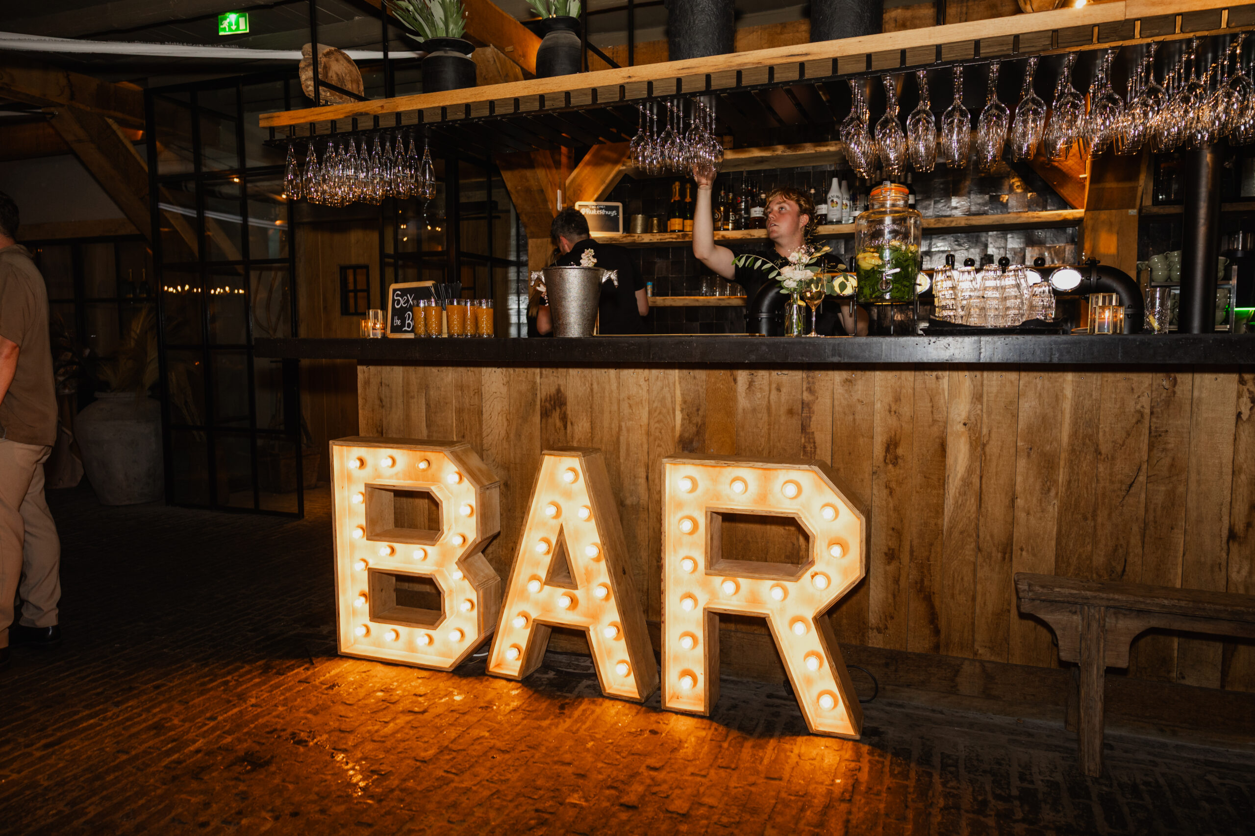 Maak de bar op jullie bruiloft extra uitnodigend met de stijlvolle lichtletters “BAR”. Perfect als sfeervolle toevoeging bij de drankentafel of cocktailbar.